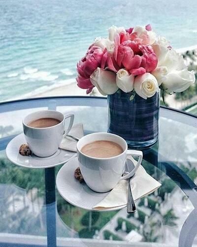 Алмазная мозаика 40x50 «Кофе и цветы»
