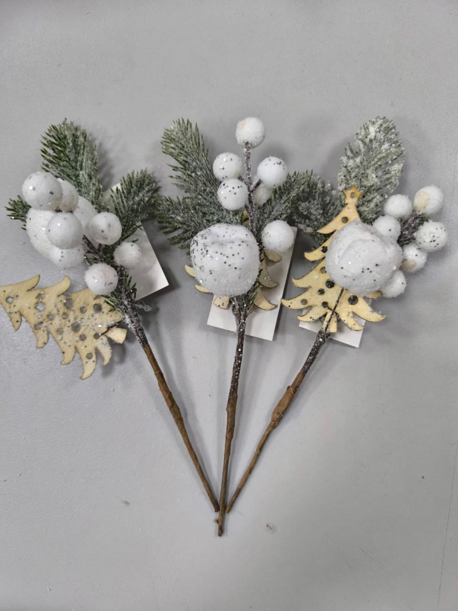Читать все статьиДекоративная новогодняя ветка с белыми ягодами и дерев.елочкой