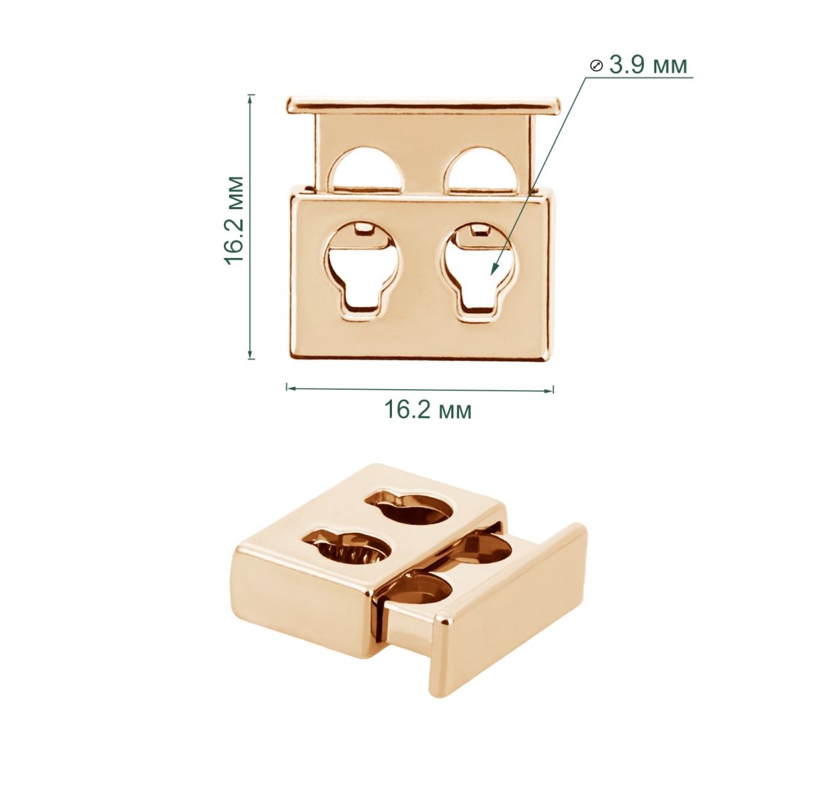 Фиксатор металлический MFR10 16,2х16,2мм, отв.3,9мм, золото
