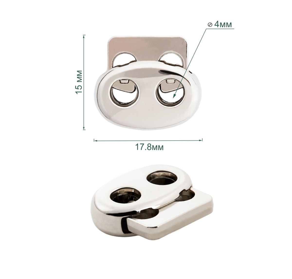 Фиксатор металлический MFR13 15,0х17,8мм, отв.4,0мм, серебро