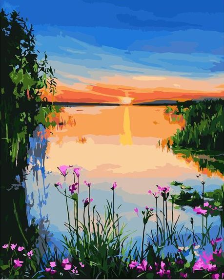 Картина по номерам «Прекрасный закат над озером» 40x50 см