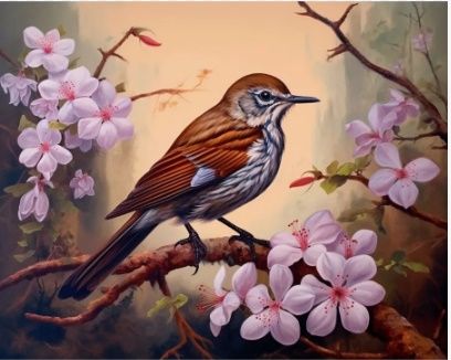 Читать все статьиКартина по номерам «Птичка и розовые цветы» 40x50 см