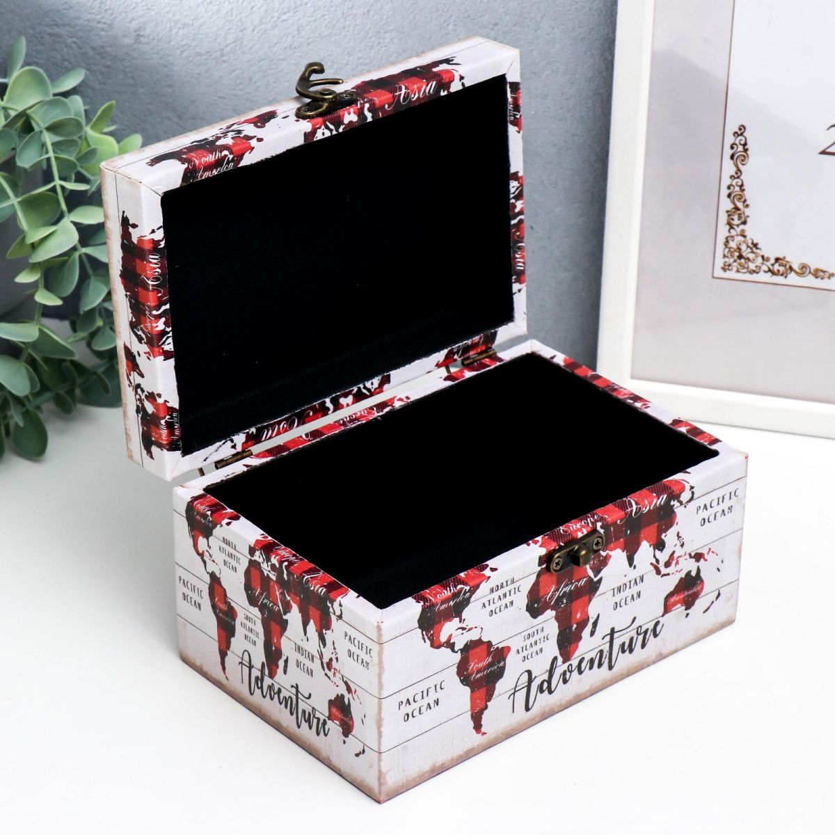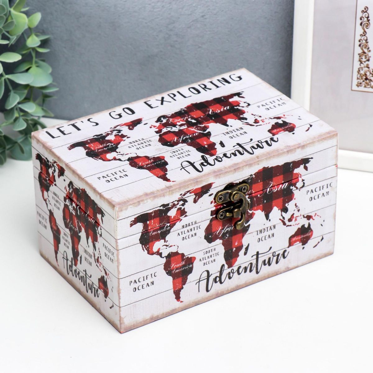 Шкатулка дерево кожзам «Карта. Приключения» 10х12х18 см