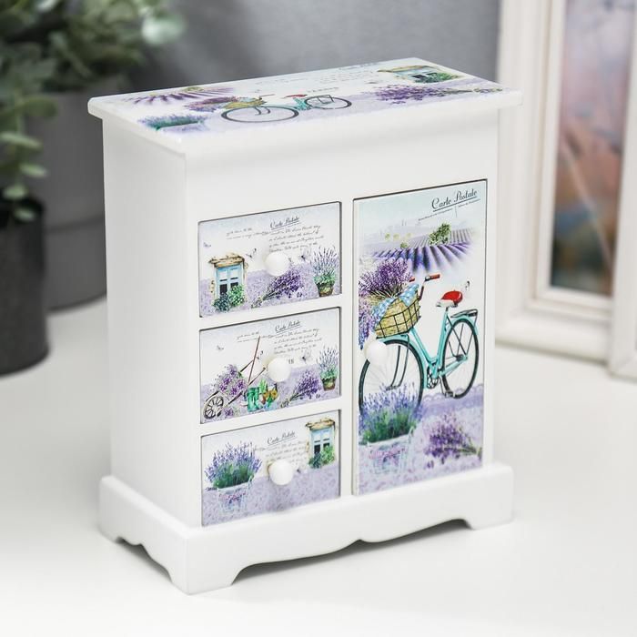 Шкатулка дерево комод 3 ящика+дверка «Лавандовое поле» 18,8х16,1х8,2 см
