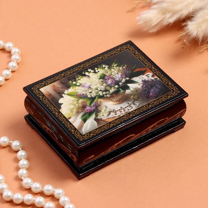 Читать все статьиШкатулка «Ландыши», черная, 8×10,5 см, лаковая миниатюра