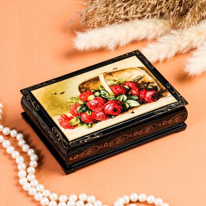 Шкатулка «Розы в корзинке», 10×14 см, лаковая миниатюра