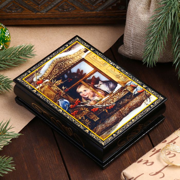Читать все статьиШкатулка «Снегири в окне», 10×14 см, лаковая миниатюра