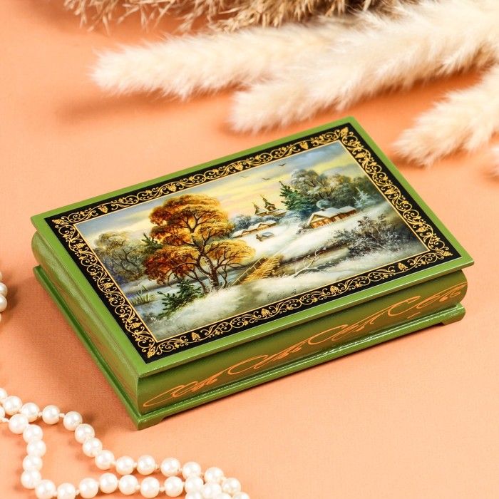 Шкатулка «Туман», зелёная, 11×16 см, лаковая миниатюра