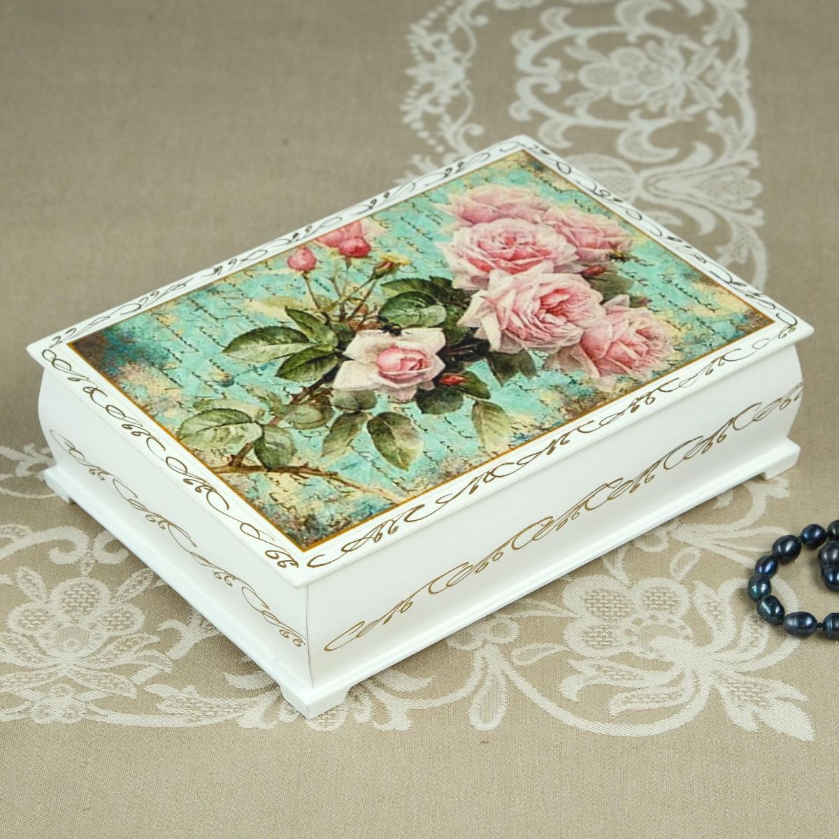 Шкатулка «Букет роз» , белая 20*15 см, лаковая миниатюра