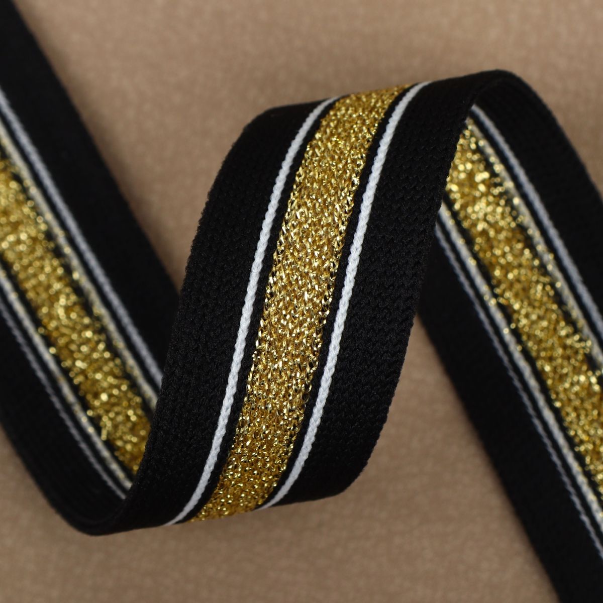 Читать все статьиТесьма трикотажная лампас 25 мм, цвет чёрный, золотой