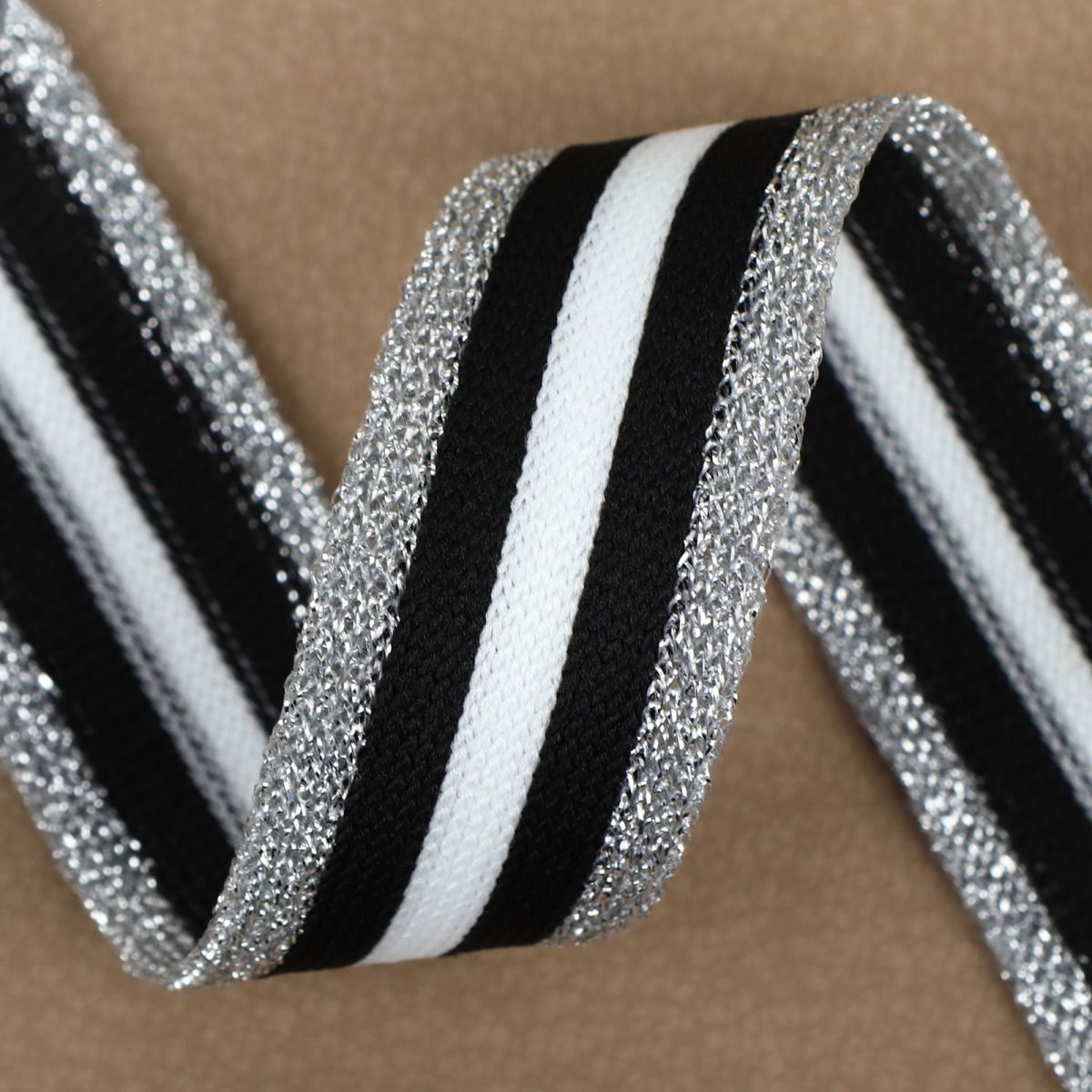Читать все статьиТесьма трикотажная лампас 25 мм, цвет серебряный