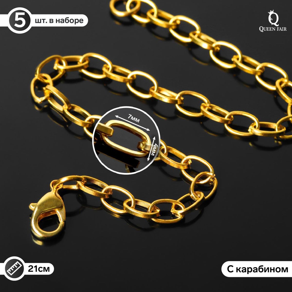 Цепочка для браслета 7*4мм, 21см (+/- 1см) цвет серебро/золото