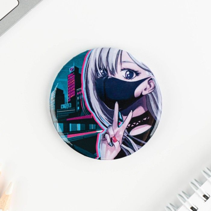 Читать все статьиЗначок закатной «Аниме девушка в городе», d = 5,6 см
