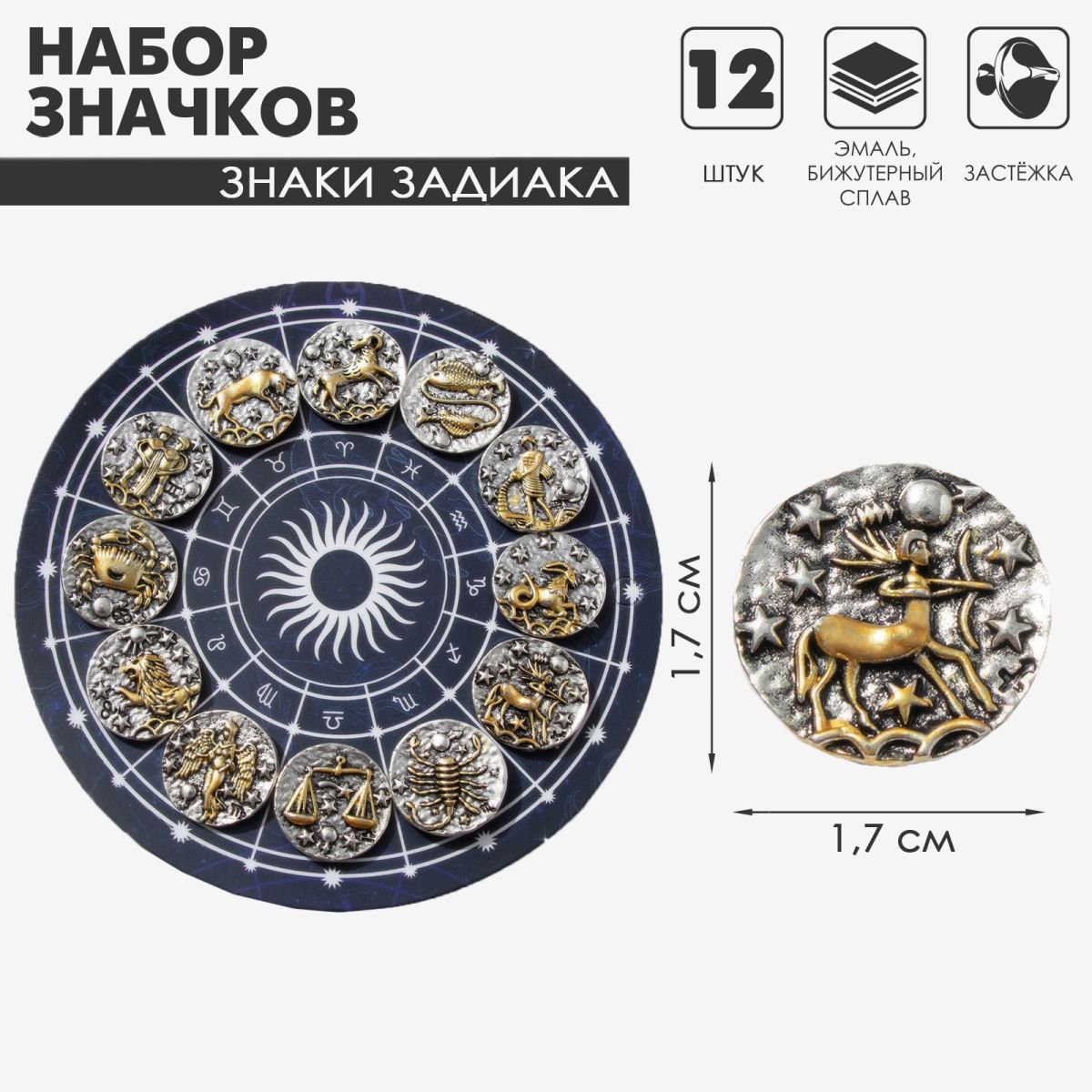 Читать все статьиЗначок «Знаки зодиака» ассорти, золото в серебре