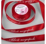 Лента атласная «Твой подарок», 25 мм, цвет красный №026