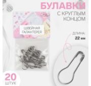 Булавки с круглым концом, 22 мм, 20 шт, цвет серебряный